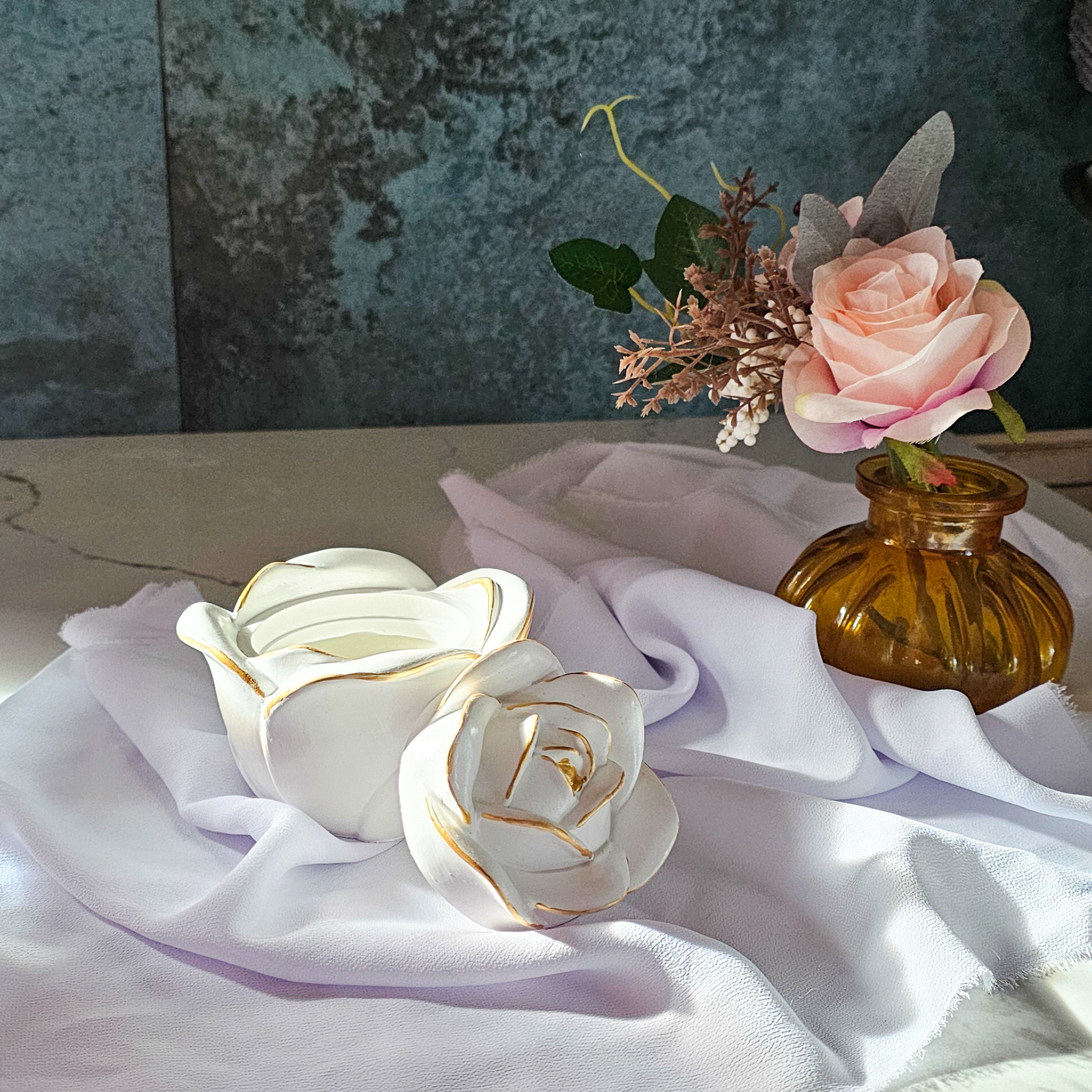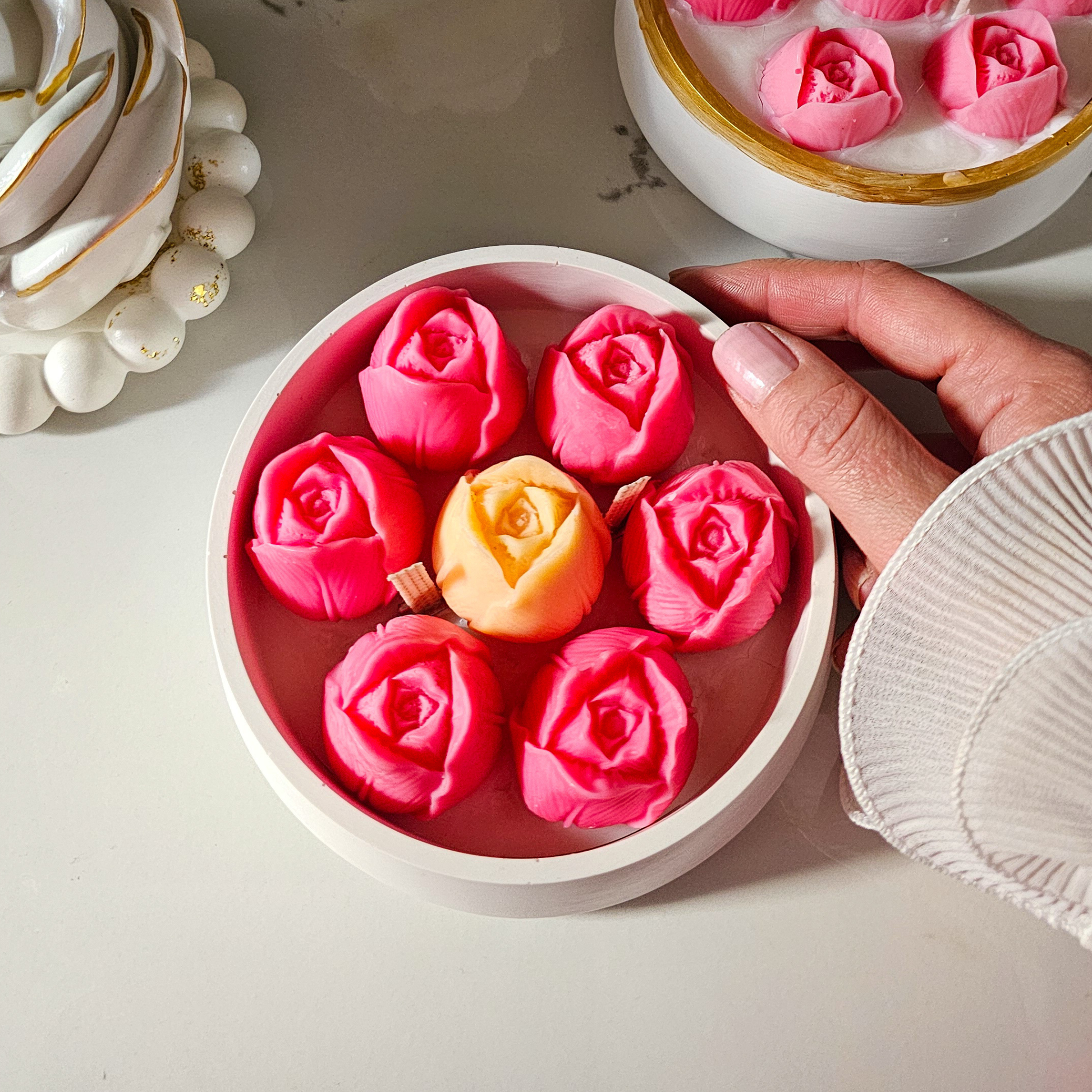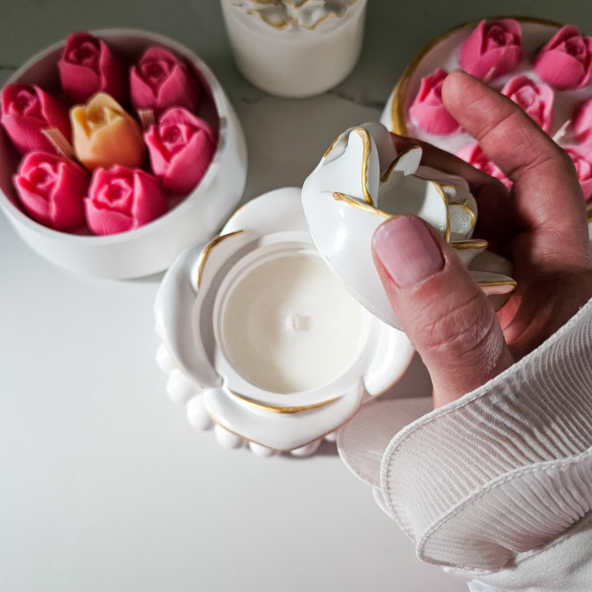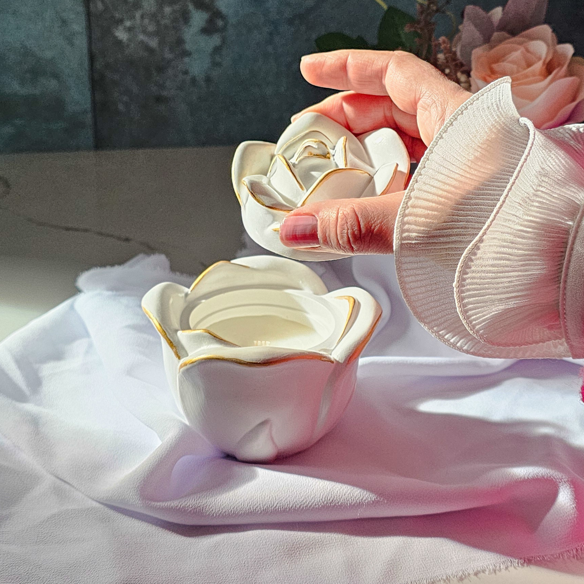 Recipientele noastre din ceramică fină, cu linii fluide ce evocă petalele de Trandafir, puritatea Anemonei sau eleganța Lalelei, sunt finisate manual și înnobilate cu detalii discrete de aur. Fiecare obiect este unic, purtând amprenta creatorului și promisiunea unei estetice atemporale.